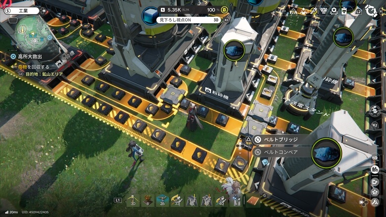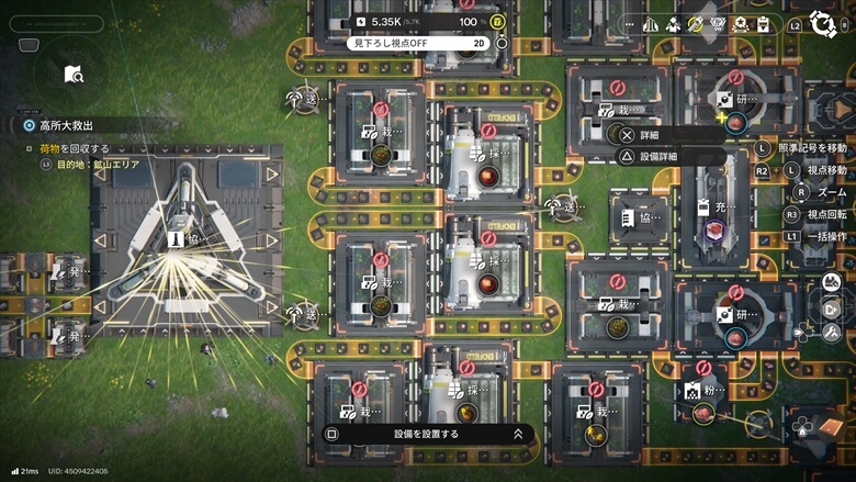 エンドフィールドは、拠点の中だけではなくマップ全体に電力を引いたり、ジップラインを設置して移動を快適にしたり、鉱石を自動で掘る装置を各地に配置したりと、フィールドそのものを少しずつ整備していくのもすごく楽しかったです。